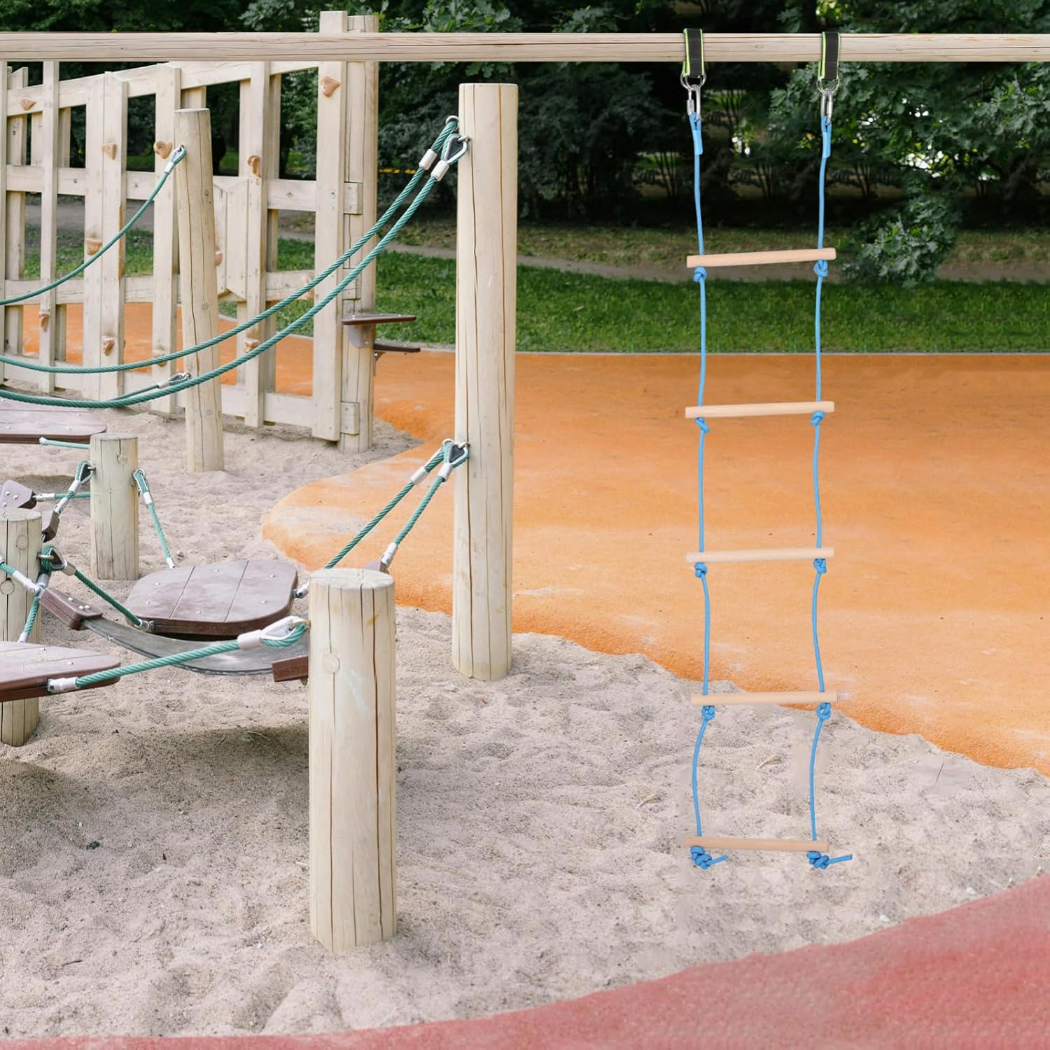 DescriptionThe children's wooden climbing frame is an excellent encourage physical activity and develop motor skills. The soft rope ladder is gentle on little hands while providing a secure grip. Ideal for outdoor play, this climbing frame can be attached to trees, playsets, or other structures, offering versatile installation options.Features-Color:Sky-blue-Material:Polyester, wood-Size:150.00X30.00X2.00cm/58.95X11.79X0.79in-Multilevel fun: this ladder caters to children of all ages, providing a fun and challenging climbing experience-Sturdy wooden build: constructed from durable wood, this ladder ensures longlasting use and safety for your children during playtime- : the soft rope construction reduces the risk of injuries, making it a safer option for kids to climb and play-Versatile usage: suitable for both indoor and outdoor environments, this ladder helps children stay active and improve their motor skills-Convenient setup: easy to assemble and disassemble, this ladder is also portable and easy to store, ideal for busy families