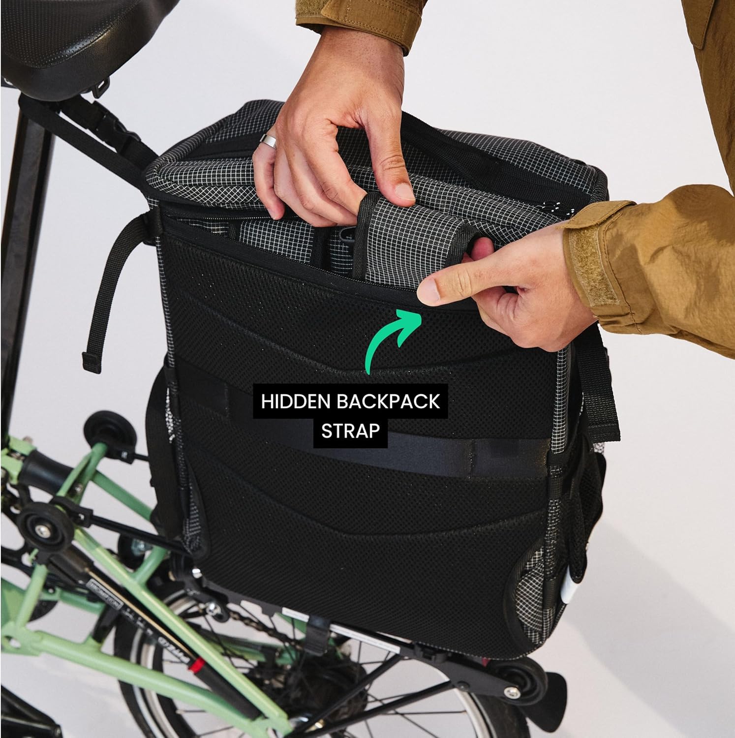 Forget rhythm and blues—this R&B stands for Rackbag & Backpack! The Vincita R&B Rackbag is built for folding bike riders who need a smart, stylish, and travel-ready bag. It attaches securely to the rear rack of folding bikes via the UniKlip 2.0 system—no heel strike and extra stability for every ride. This versatile bag converts easily into a backpack, making it ideal for commuting or city exploring. It's made from water-resistant material with YKK zippers to protect your belongings, and it includes a raincover for unexpected weather. Inside, you’ll find a bright lining for better visibility, a padded compartment for a 16" laptop, and mesh side pockets for water bottles or accessories. For added convenience, the bag features a top handle, luggage trolley sleeve, gear loop, and safety elements like a reflective panel and light holder.