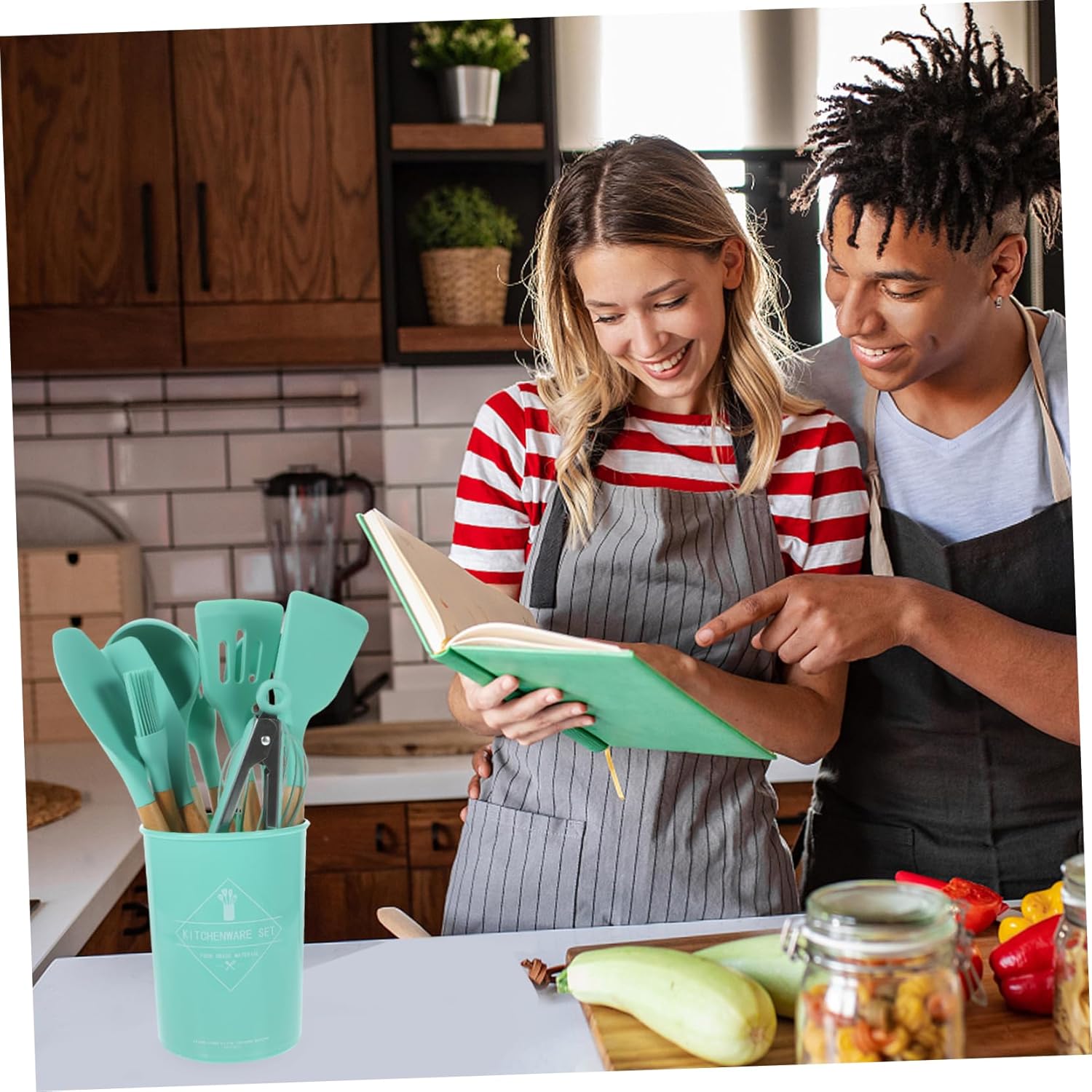 Package List 1 x Spatula 1 x Soup Spoon 1 x Slotted Spatula 1 x Small soup spoon 1 x Pasta spoon 1 x Egg 1 x Oil brush 1 x Salad Spatula 1 x Scraper 1 x Food Tongs 1 x Slotted spoon 1 x Storage bucket Characteristics - Size: 31.00X6.00X2.30cm/12.18X2.36X0.90in(Pasta spoon) Kitchen Accessories - Size: 32.00X8.00X3.00cm/12.58X3.14X1.18in(spatula) Kitchen Baking Tool Kit - Size: 16.00X12.50X12.50cm/6.29X4.91X4.91in(storage bucket) Spoon -Material:Silicone, wood Serving Spoon - Size: 31.00X8.00X6.50cm/12.18X3.14X2.55in(soup spoon) Kitchen Silicone Utensils - Size: 26.00X8.00X3.50cm/10.22X3.14X1.38in(tongs) Kitchen Utensil - Size: 31.00X6.00X1.80cm/12.18X2.36X0.71in(scraper) Kitchen Spoon - Size: 32.00X7.00X2.00cm/12.58X2.75X0.79in(small soup spoon) Kitchenware - Size: 32.00X7.00X1.80cm/12.58X2.75X0.71in(salad spatula) Serving Spoon For Spaghetti - Size: 27.00X4.00X1.80cm/10.61X1.57X0.71in(oil brush) Kitchen Cooking Spoon -Color:Light Green Pasta Server - Size: 26.00X6.00X6.00cm/10.22X2.36X2.36in(egg ) Kitchen Accessory -The kitchen utensil set with comfortable handle is easy to hold, also easy to use Kitchen Utensils. -Made from silicone and wood material with stable performance and Kitchen Tool. -Lightweight and compact. It is easy and convenient to use, and easy to store when not in use Kitchen Ware.Goods DescriptionKitchen Ware If you are looking for a practical kitchen utensil set, I want to recommend this this kitchen utensil for you.Kitchen Utensils It would be a nice kitchen cooking helper for you.Kitchen Utensil We adopt silicone and wood materials, can keep it for a long time