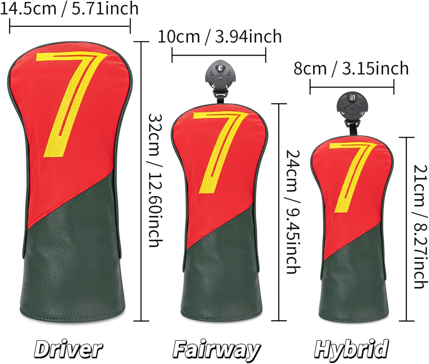 Set Include: 1Pc or 4Pcs Golf Club Head Cover Condition: New with tags Material: 50% PU Leather, 50% Polyester Tag No.---|---Recommended Size---|-------Width------|------Length-- -Driver---|--------Driver--------|---5.7''/14.5cm---|---12.6''/32cm Fairway---|--------Fairway-------|----3.9''/10cm----|----9.4''/24cm -Hybrid---|--------Hybrid--------|-----3.1''/8cm----|----8.3''/21cm