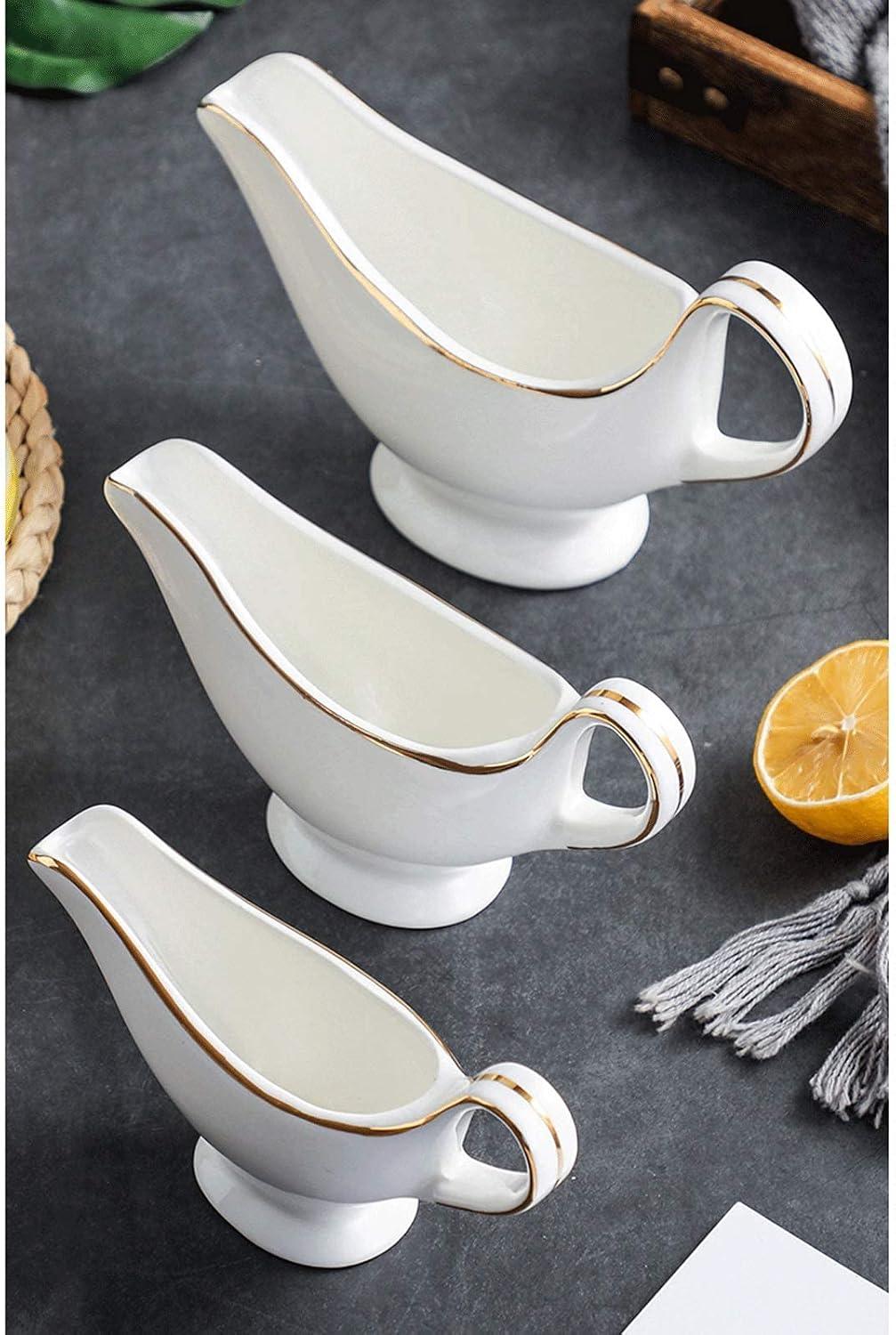 Product Name: Gravy BoatProduct Material: CeramicProduct Size: 6.69inx3.93in/6.10inx3.42in/7.87inx4.80inProduct Package: One PiecePrompt: 1. Please check the color and size of the product before purchasing 2. Our store does not contain any products other than the gravy boats shown in the product photos 3. Please allow a little color difference due to different monitors. 4. Due to manual measurement, there will be some errors. Please refer to the actual size. Thank you!