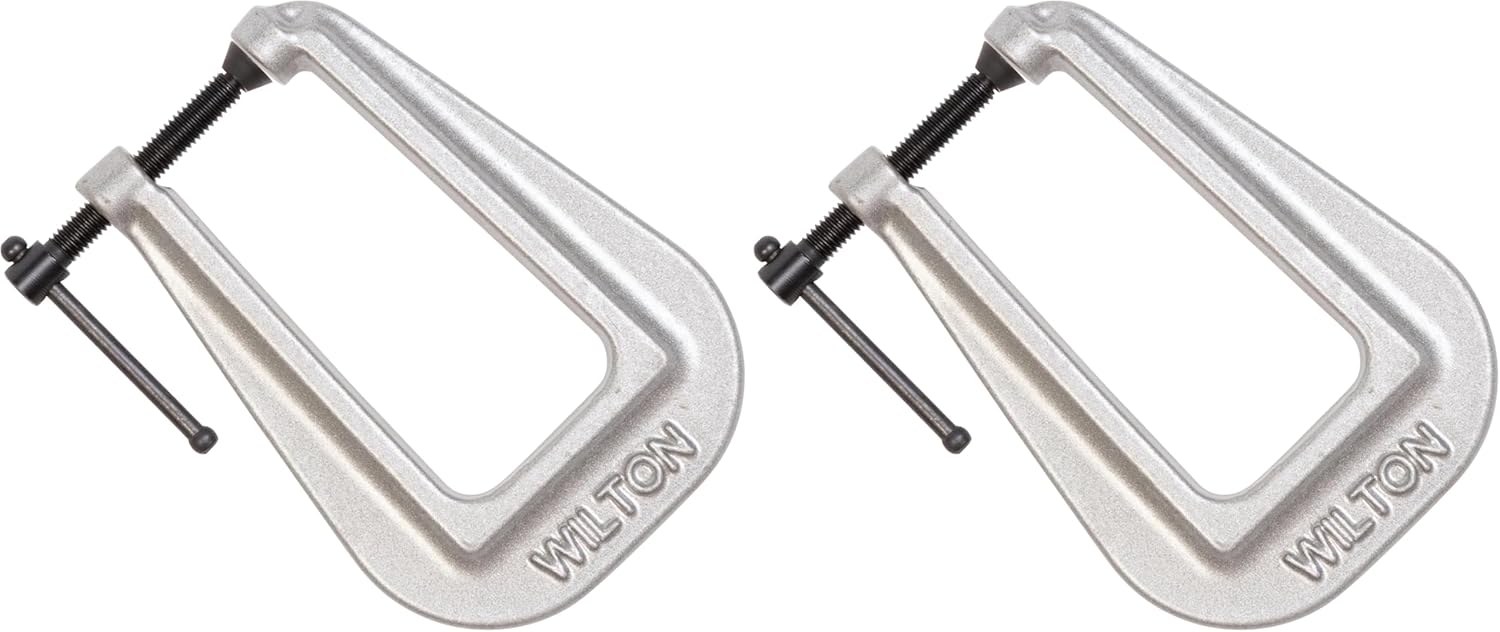 Wilton 140 Series Deep Reach Carriage C-Clamps are ideal for light industrial, woodworking and repair applications. They feature throat depths up to 4-1/2”, a black oxide coating, oscillating head, and sliding cross pin handle.