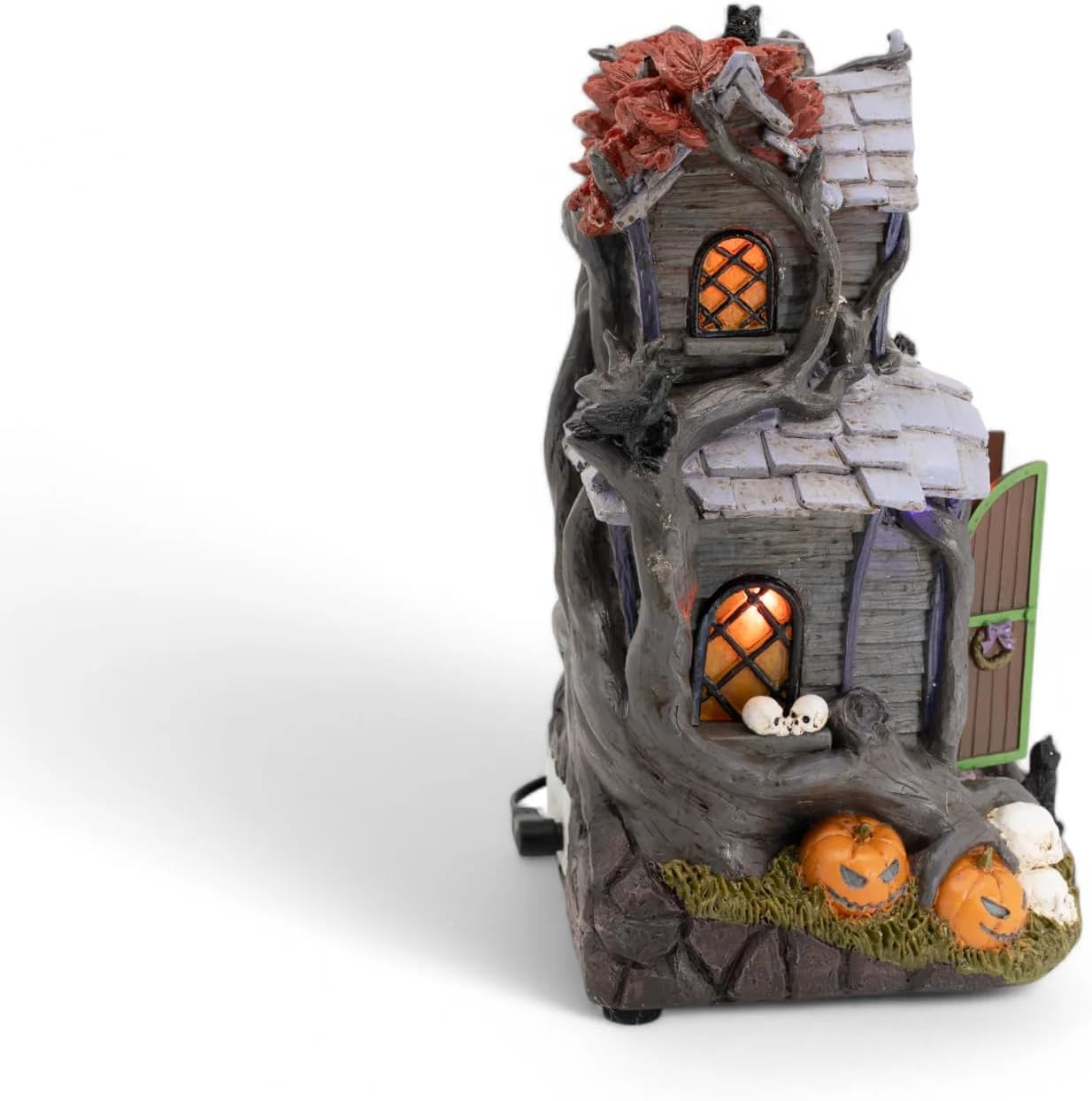 Dare to enter the eerie realm of the Witch of the Woods, where magic crackles in the air, shadows dance under the moonlight, and an ominous presence lurks among the trees. This animated masterpiece comes alive with LED lights, haunting music, and spine-chilling motion, making it a must-have for any Halloween enthusiast.
