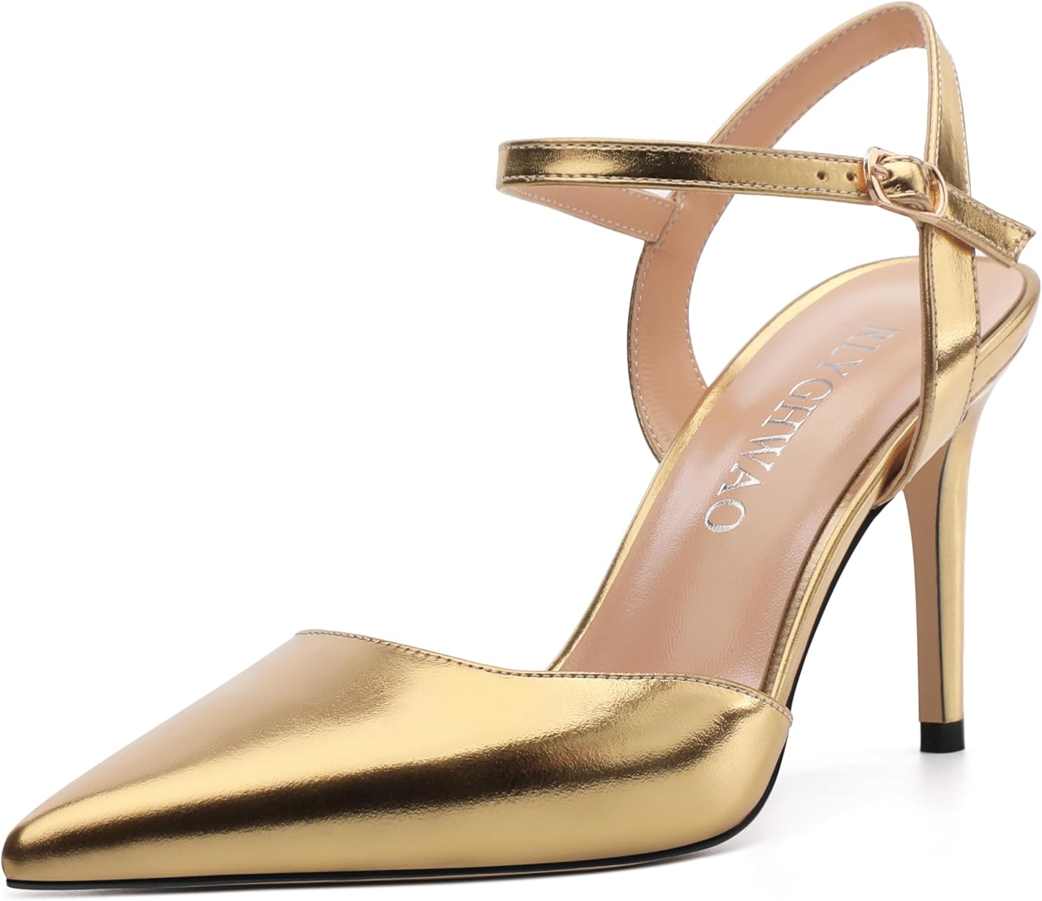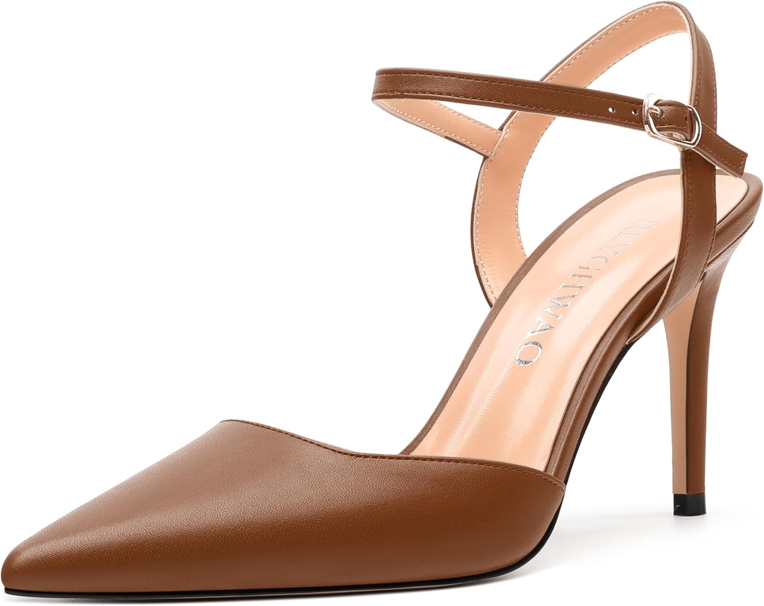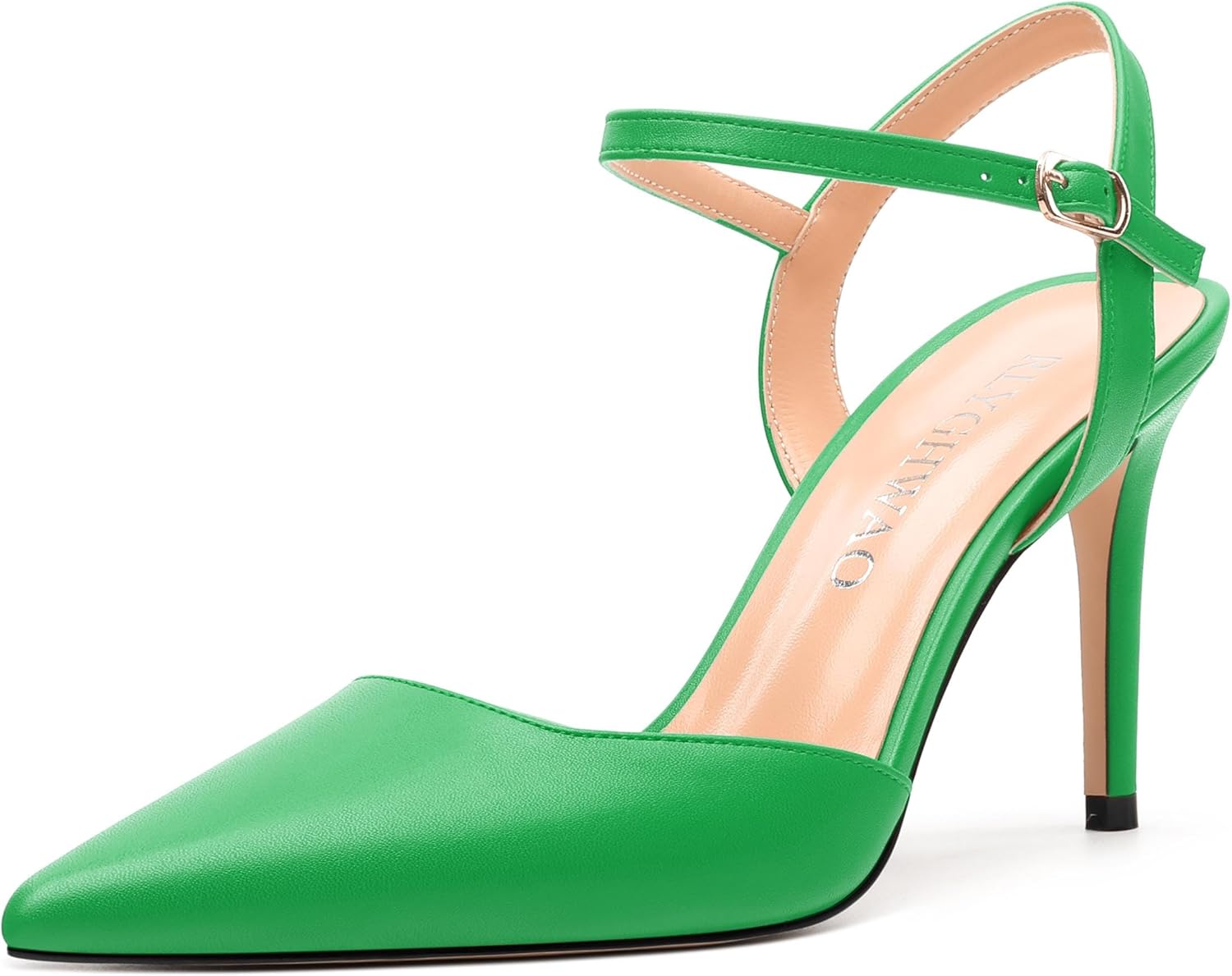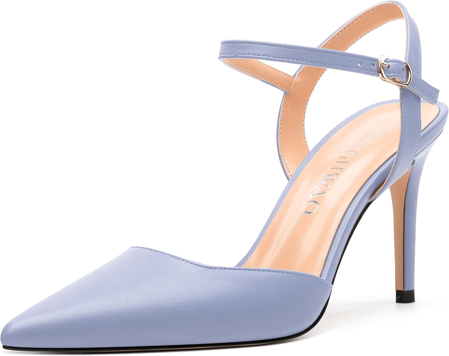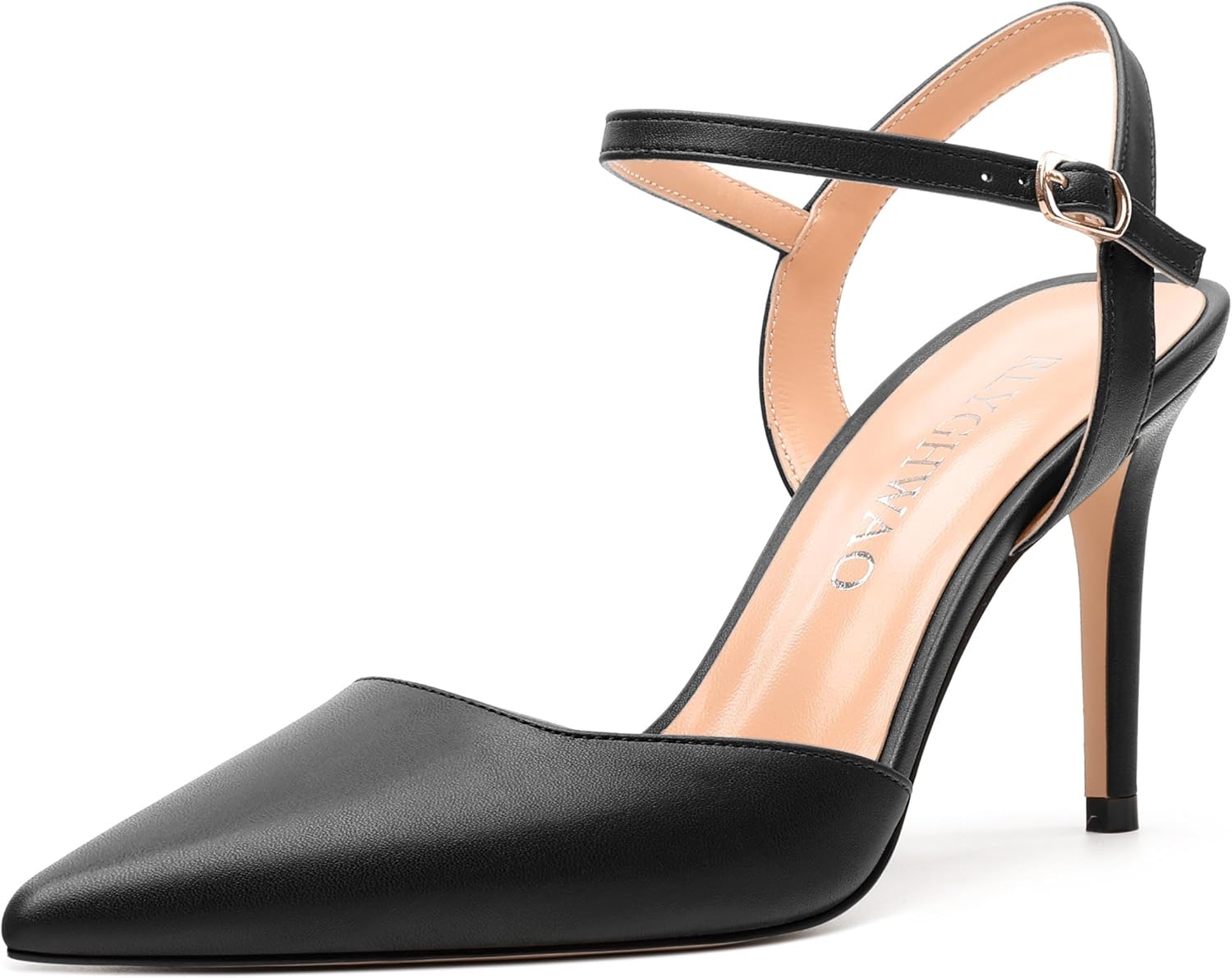 Women's Pumps, Buckle Adjustable Strap Pointed Toe Stiletto Heels, Fashion Matte High Heel Shoes for Women
