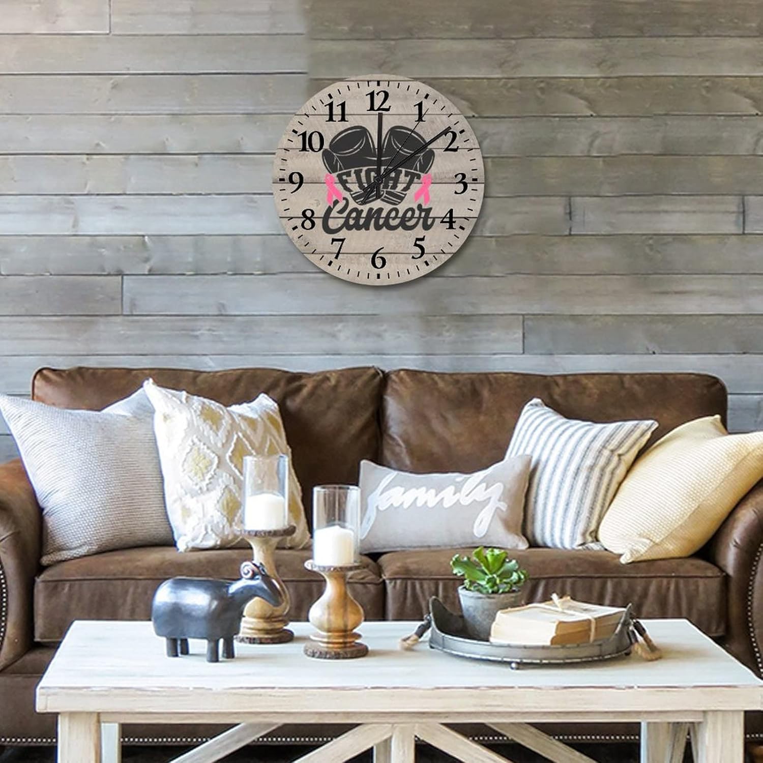 Breast Cancer Fight Cancer wooden clocks Pink Ribbon Being Strong Support cool room decor Silent Non-Ticking Quartz Battery Operated Arabic Numbers Clock Living Room Kitchen Bedroom 15 InchDetails:Product Size: 10/12/15 inches, (25/30/38 cm)Shape:RoundMaterial: WoodFunctional Home DécorThis Breast Cancer Awareness Survivor clock aren't just for timekeeping. They function as beautiful wall decor pieces, beyond telling time, and bring both style and purpose to any room.A charming home decoration, very suitable as a housewarming gift, making the home more warm. Suitable for any room, you can put it in any room such as home, living room, master bedroom, kitchen, bathroom, home office. Elegant, durable and stylish.Clock Hands Troubleshooting Guide:Check that the battery is a new battery and not a used battery.Make sure the hour and minute hands are not crossing or touching each other. If they are, adjust the hands by slightly bending them.See if the center pin that holds the hands together is firmly pushed in or screwed on, depending on the style.If hands are still not moving after the above, please reference the hands replacement instructions included with all of our open face clocks.