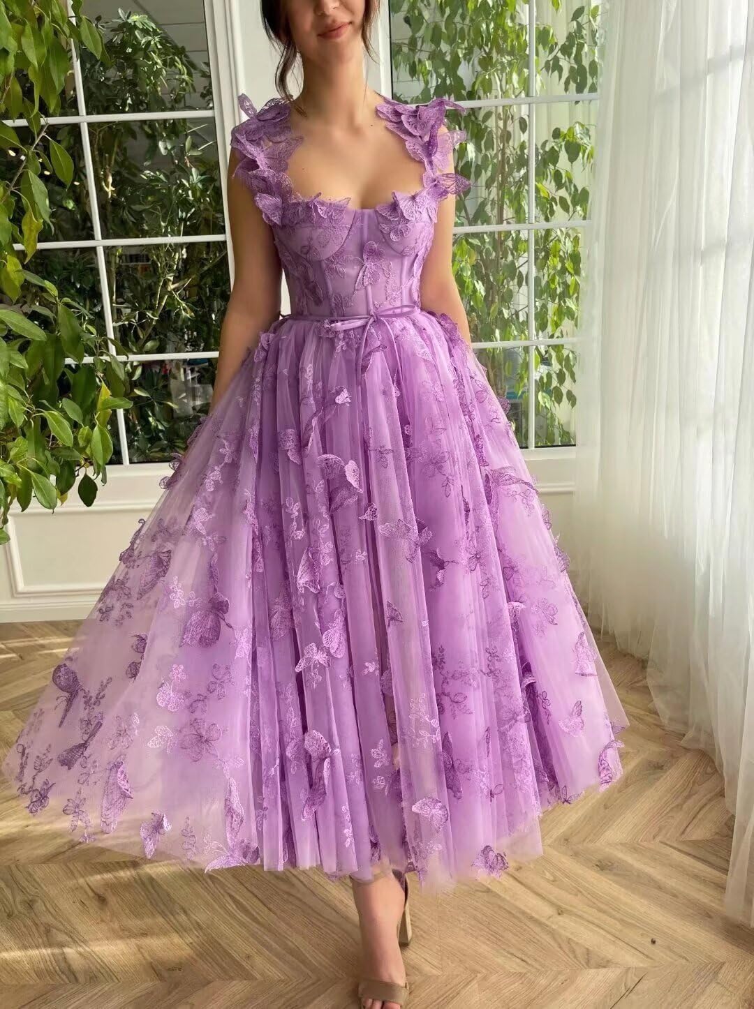 | Fabric Type | 3D Butterflies Tulle Prom Dresses Tea Length with Pockets |