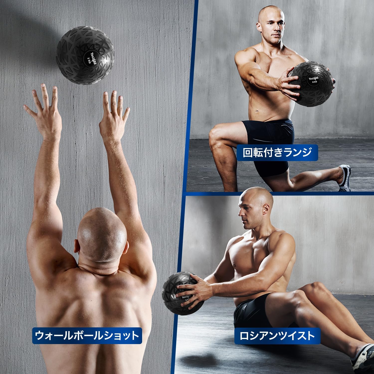The slam ball is made of durable PVC material that is resistant to breakage when hit on hard surfaces and has a non-slip feature. The iron sand inside provides stable movement and is suitable for a variety of exercises. The grip prevents slipping even when you sweat so you can enjoy your workout. Choose from a wide range of weight lineup from 6.6 to 22.0 lbs (3 to 10 kg). Use it at home, in the gym, or anywhere else.
