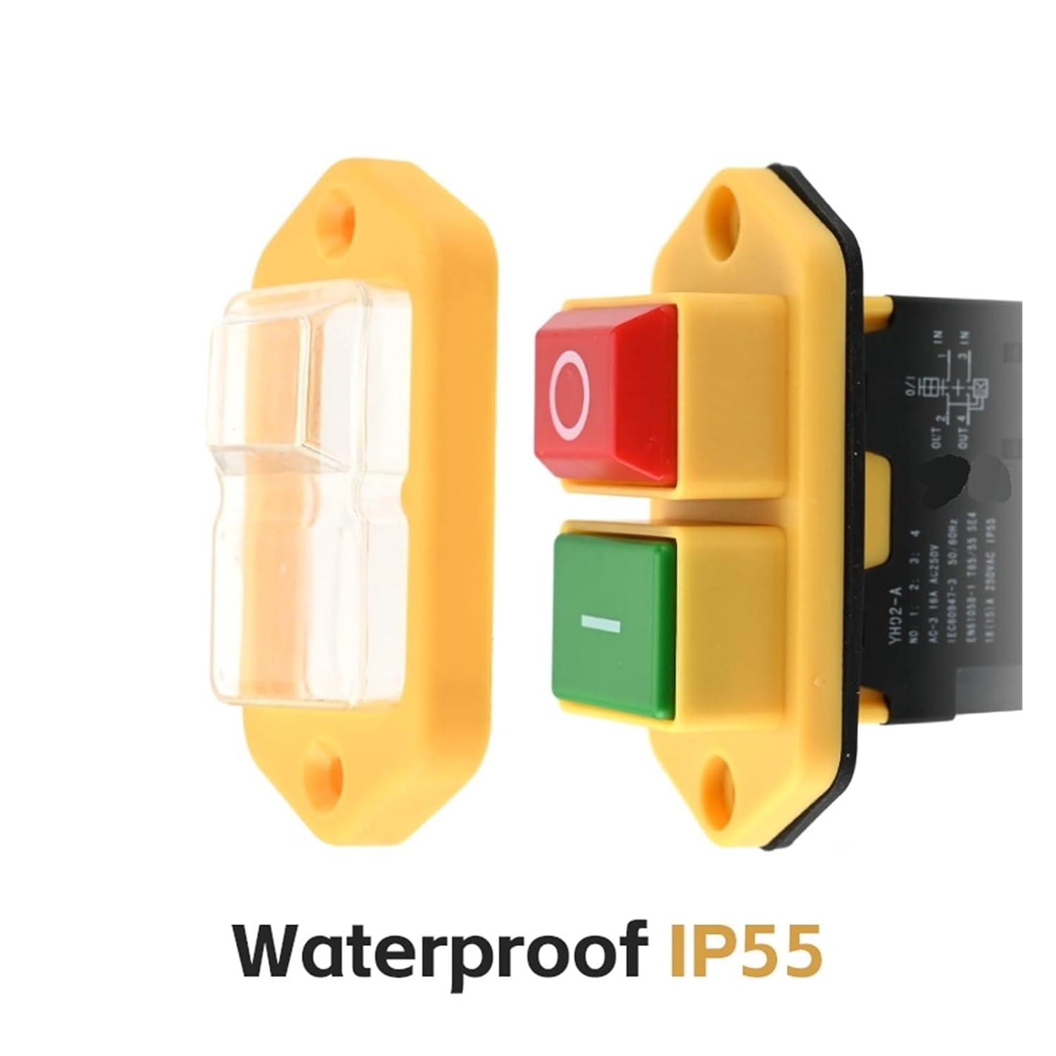 This product can replace magnetic switches of models such as KJD17 and KLD28Product name: Electromagnetic Push button switchModel: YH02-ARated Voltage:AC250V 15A / AC120V 8ARated Current: (AC-3)Coil Voltage: 220-240VRated: 50/60HzPin Number: 4Pin/5PinDegree Protection: IP55Number of operating Cycles: 5E4Ambient temperature: T85/55This switch have the following function that derived from power-off and under voltage protection:1. Double Pole cut off 2. Brake function with one pole cut off3. These two versions can be combined with overload protection switch to achieve under voltage and overload protection Widely used in machine tools, large-scale power tools, garden machinery above, belonging to the safety switch, the device will not turn on after power off unexpectedly, need to press the green start button will turn on.Current : 15AMaterial : PlasticSwitch Type : Push Button SwitchModel Number : YH-02A KJD17 KJD17A KLD28 KLD28AItem Type : SWITCHESIs Smart Device : NoOrigin : Mainland China110V Contact capacity : 8A220V Contact capacity : 15A