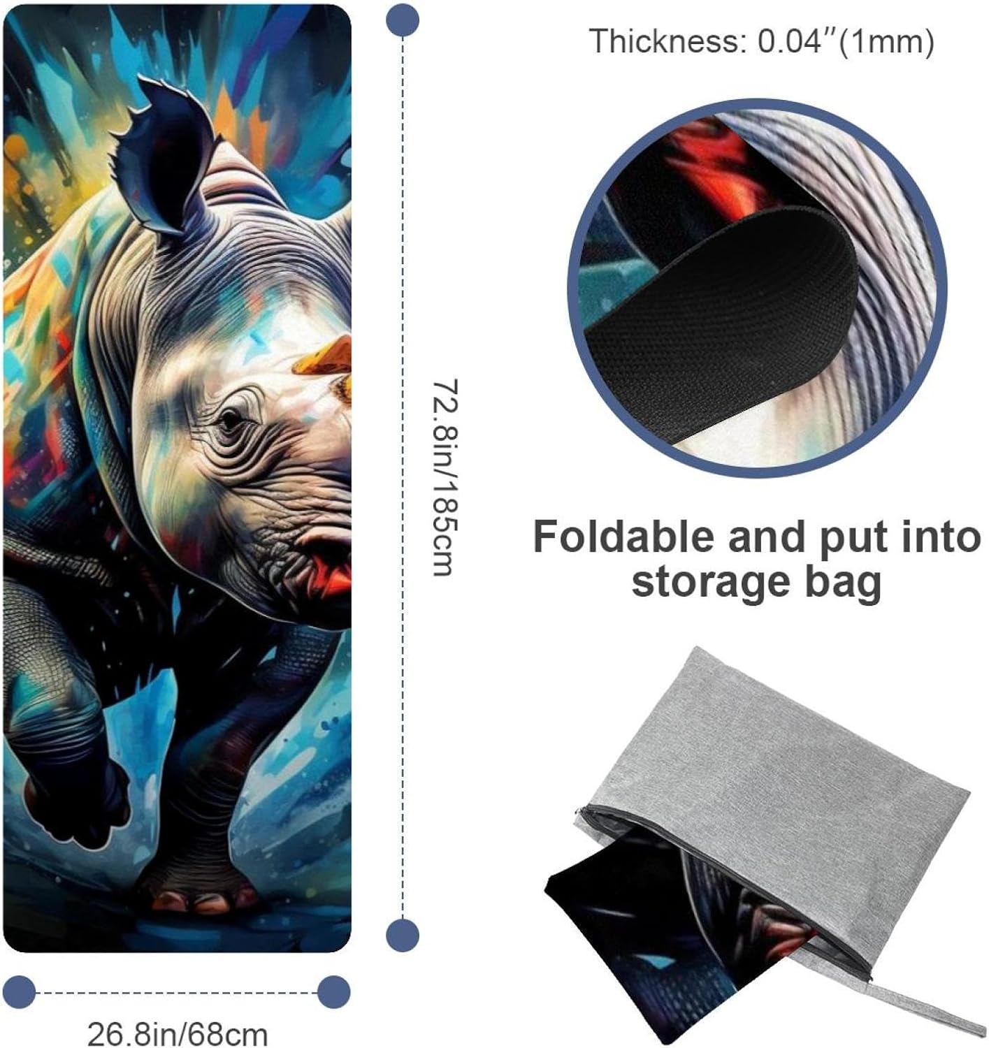 MUOOUM Yoga Mat Towels - Available in A Variety of Awesome Patterns Eye-catching Pattern These vibrant patterns will make your workout more enjoyable. Easy Carrying Yoga Towel for Travel Lightweight and compact, the towel can keep your bag weight down on the go. Easily pack & store inside the mesh travel bag to take to classes, gym, travel, camping, beach & more. Features: * Material: Suede fabric * Size: 72.8x26.8 in / 185x68 cm * Thickness: 0.04 in / 0.1 cm * Weight: 1500g * Color: As the picture shows Package Includes: 1 x Yoga towel 1 x storage bag Tips: 1. Due to the shooting angle and shooting light problems, the product is allowed to have a slight color difference 2. We offer customized services, you can customize special styles for family and friends, if you need, please feel free to contact us