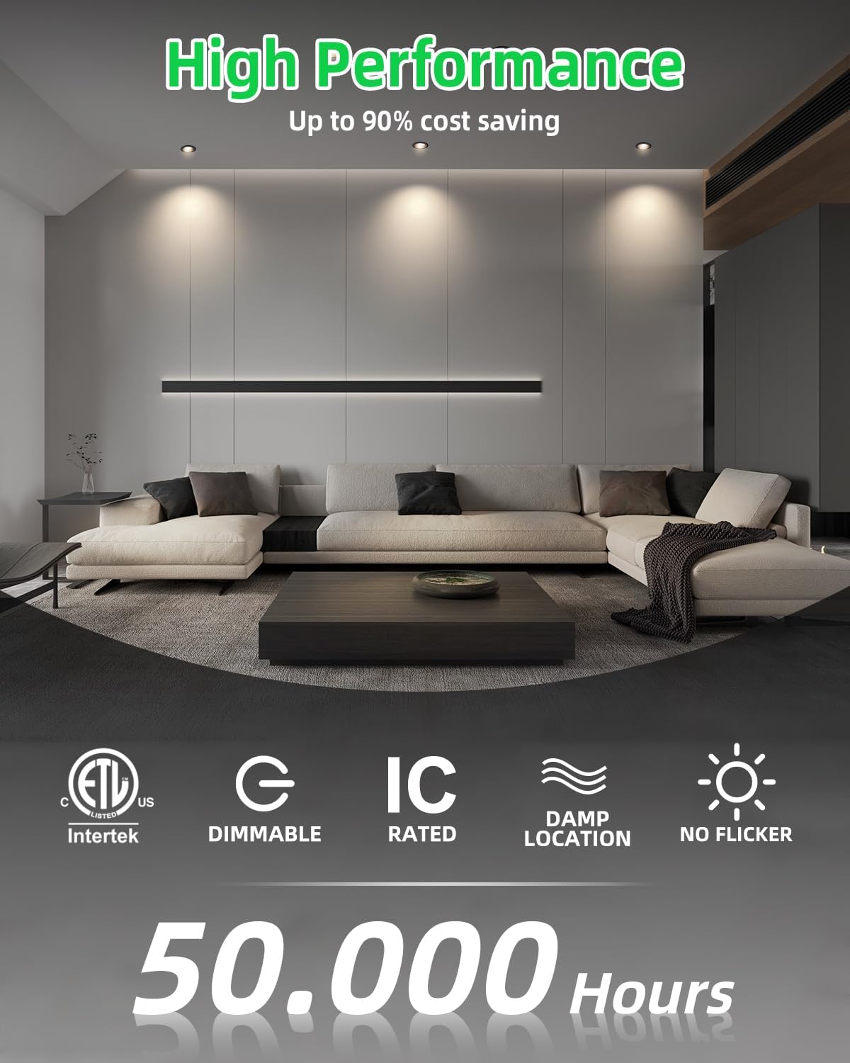 | Other Special Features of the Product | Energy Star certified & ETL-listed & UL-listed, 50000hrs lifespan, 5 years warranty, Damp location available, Easy to install & Space-saving, 5%-100% Dimmable |